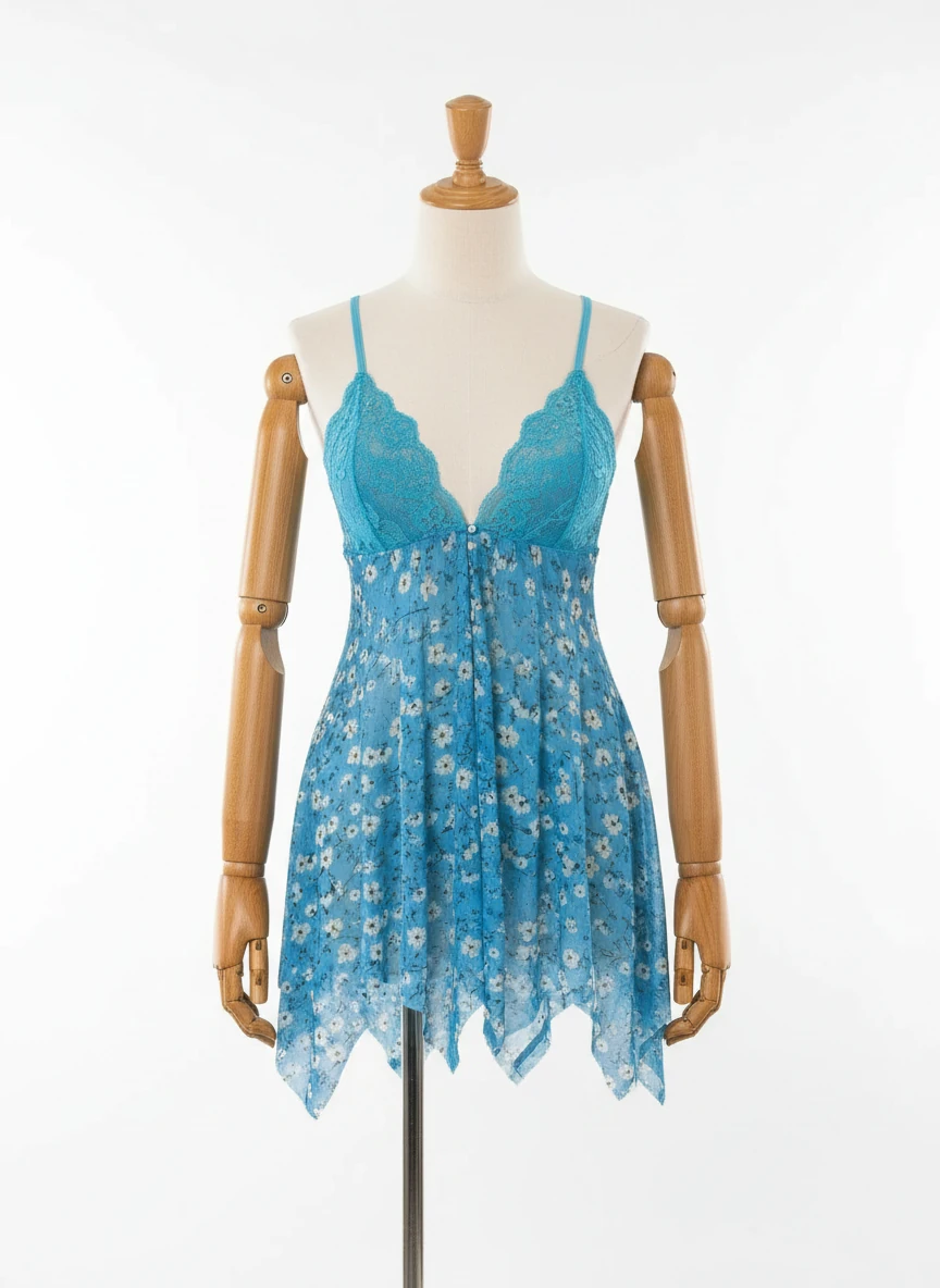 جزئیات طراحی: گل‌دوزی ظریف، بندهای باریک قابل تنظیم، لبه‌های چین‌دار با حالت موج‌دار