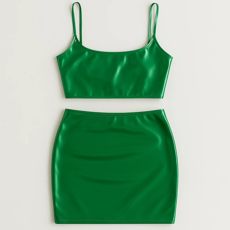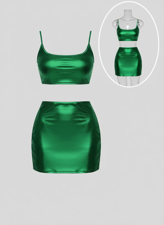 ست تاپ نیمتنه و دامن کوتاه جذب براق (لمینت متالیک)