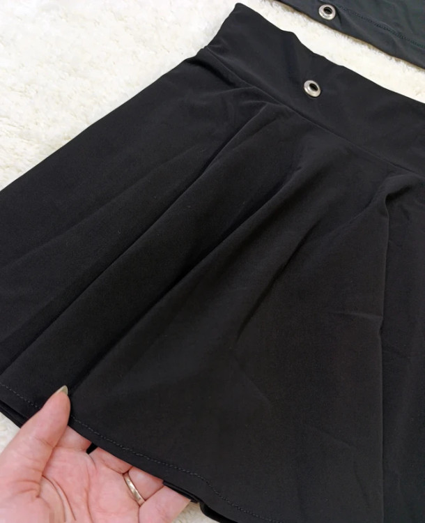 مدل دامن: کوتاه زیر باسن، کلوش، کمر کش، کمر دامن پانچ شده