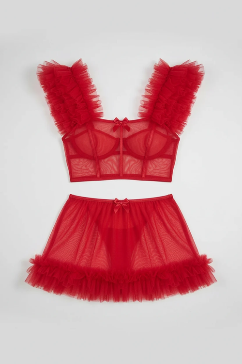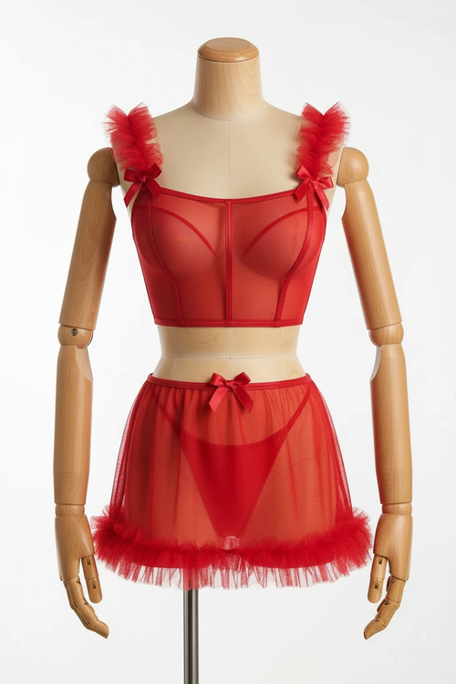 کمرکش راسته، در قسمت پایین دامن تور پر چین پفی دوخته شده