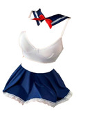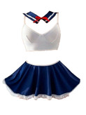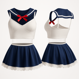 - طراحی این ست با ترکیب رنگ سفید و آبی دریایی و یقه شاخص ملوانی، یک استایل شاد و خاص ایجاد میکند که کمتر در بازار تکرار شده است.