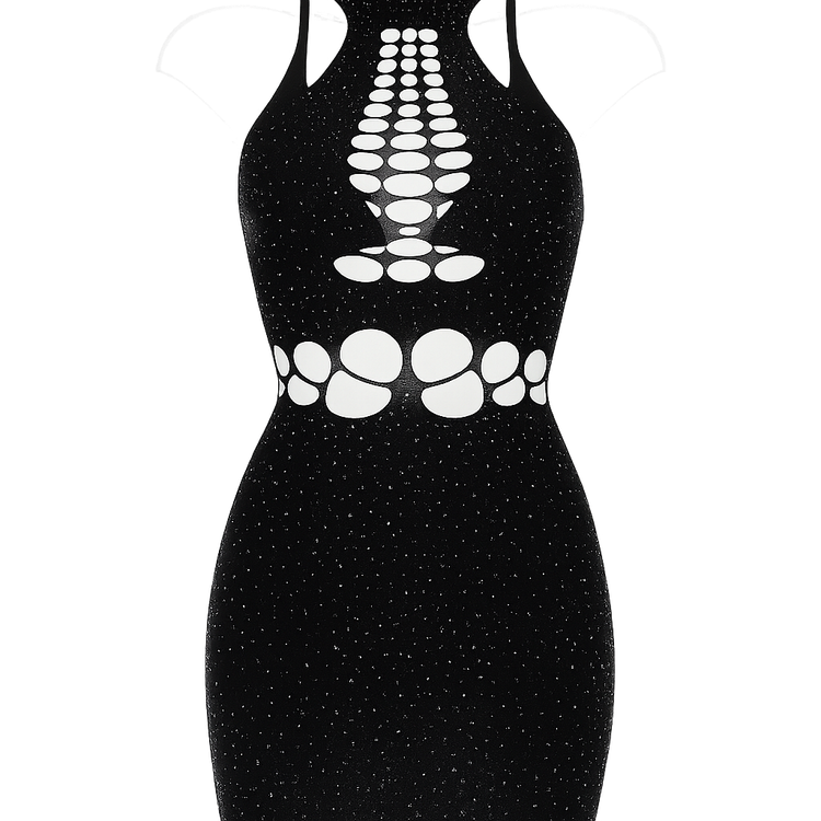 جلو: برشهای بیضیشکل متصل از قسمت یقه تا شکم که جلوه جذاب و جسورانه ایجاد میکند.