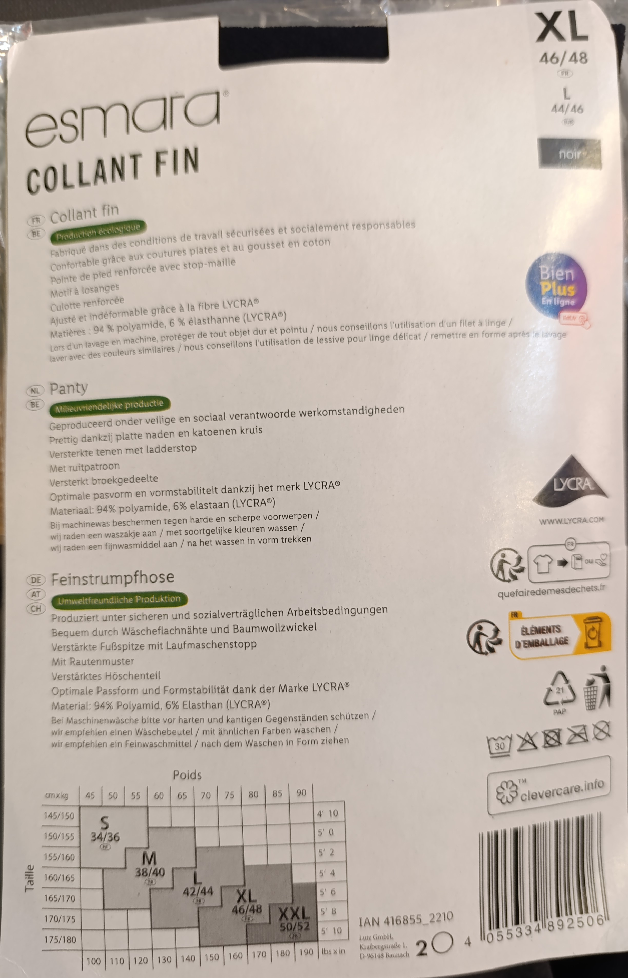 ویژگی خاص : نوک پا مقاوم (Stop-maille) برای جلوگیری از ریشه‌ریشه شدن
