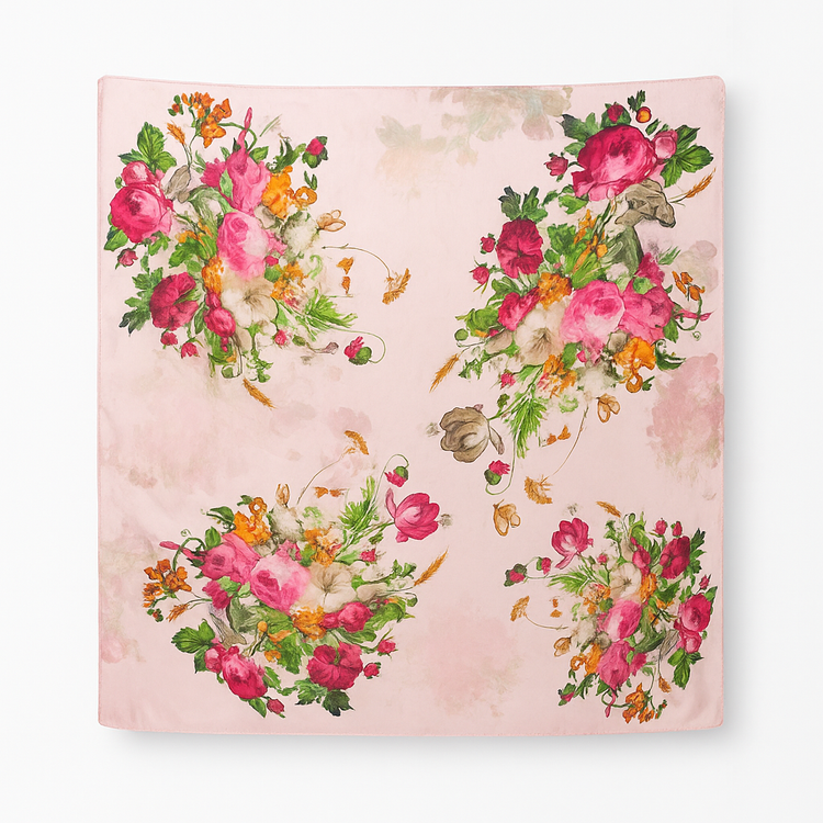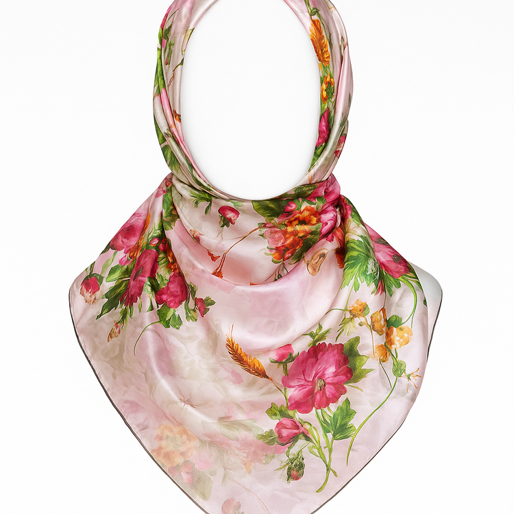 طرح: گلهای رز و ترکیب بوتههای گل، برگها و خوشههای گندم با رنگبندی گرم و شاداب (صورتی، قرمز، نارنجی و سبز)
