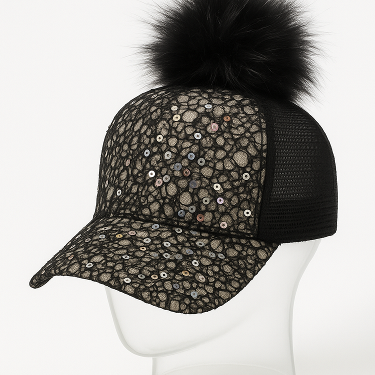مدل : کلاه بیسبالی پشت توری با پوم‌پوم خزدار