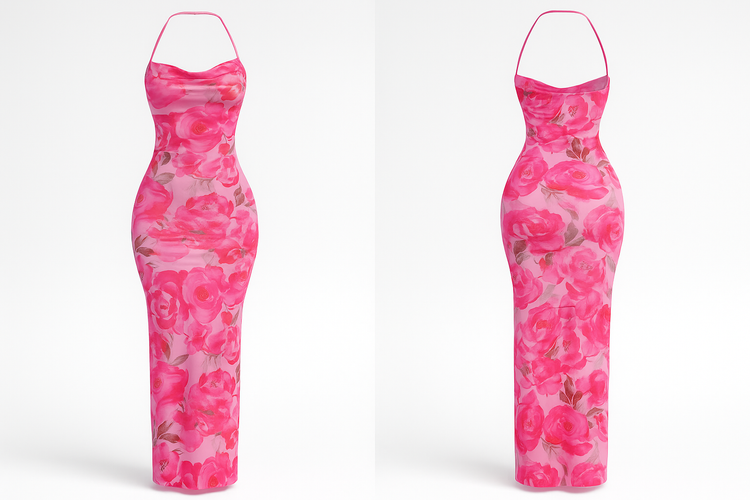 نوع یقه: مدل هلتِر (Halter) با بندهای نازک روی گردن