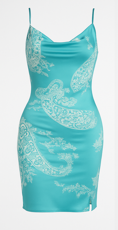 رنگ: فیروزهای درخشان با طرحهای سفید الهامگرفته از نقوش اسلیمی و پaisley