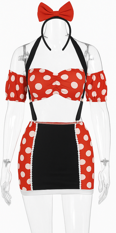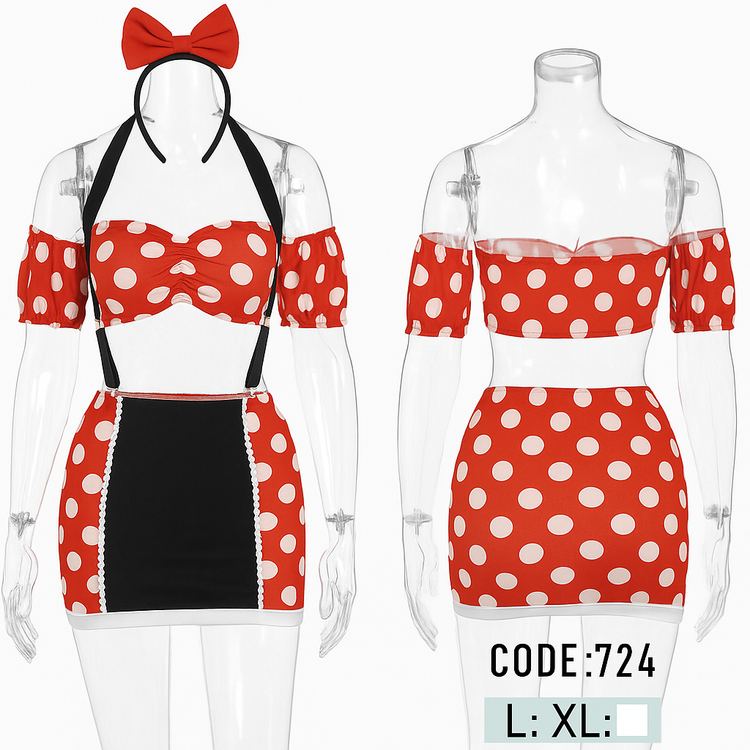 نوع محصول: ست لباس فانتزی دوتکه (کرپ تاپ + دامن کوتاه)