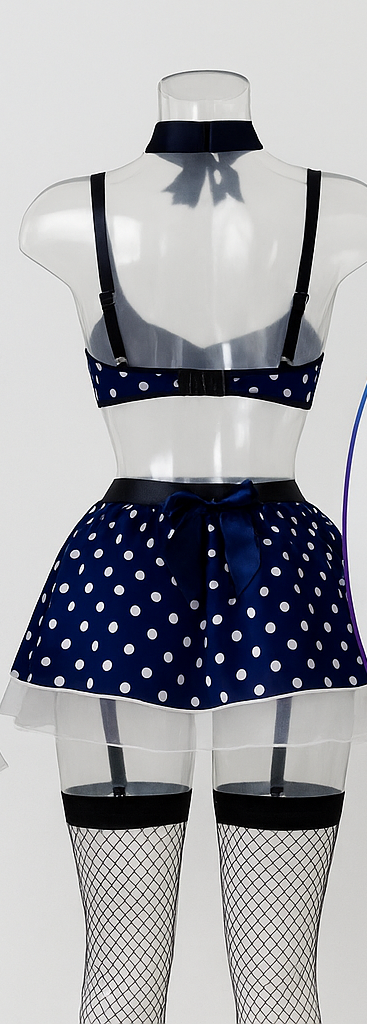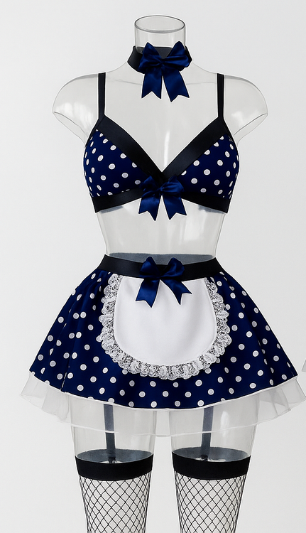 نوع محصول: ست لباس فانتزی دوتکه به سبک پیشخدمت (Bra + دامن کوتاه) همراه با یقه پاپیونی