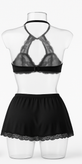 - دامن کوتاه با لبه دانتل ست را خاصتر و کاملتر میکند