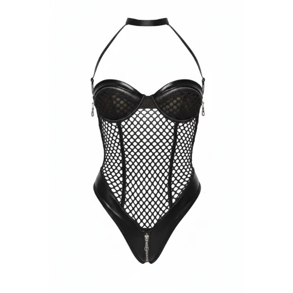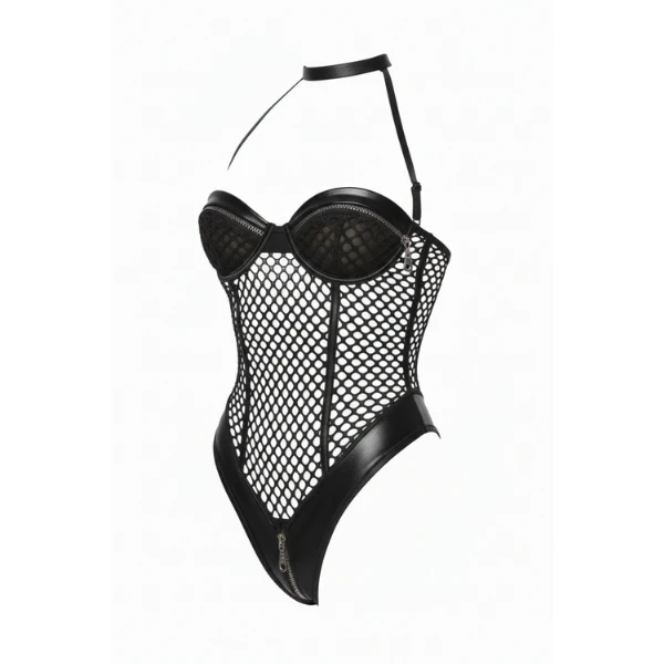 مدل: بادی زنانه فانتزی توری و چرمی
