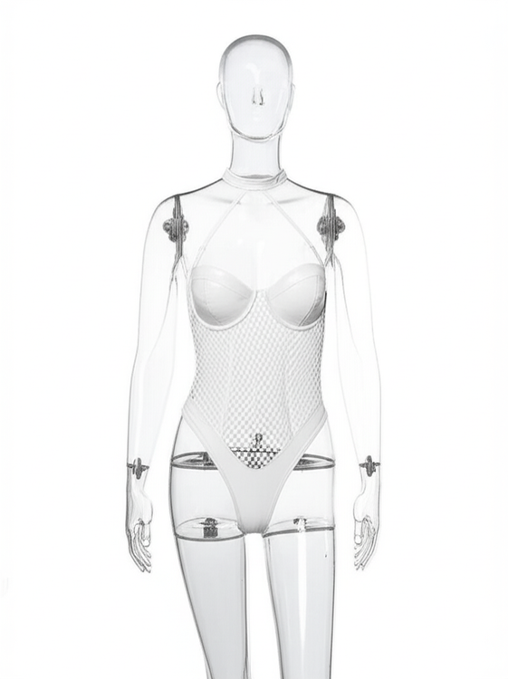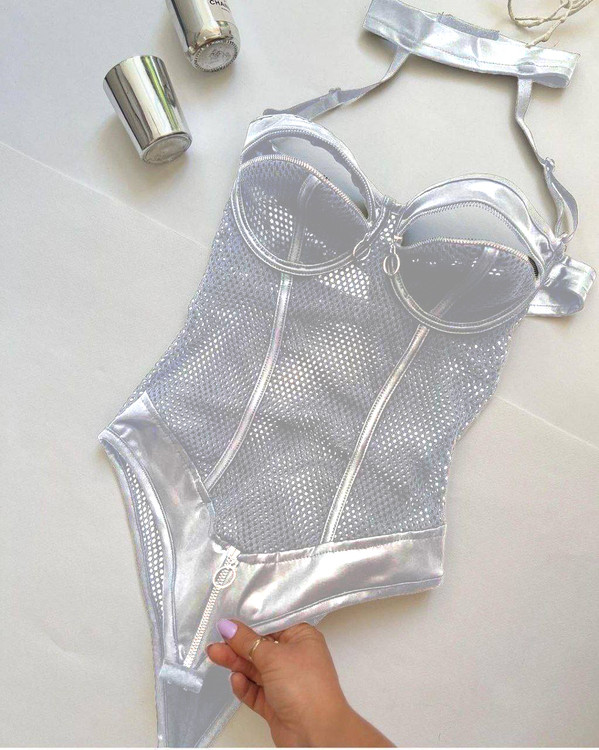 مدل: بادی زنانه فانتزی توری و چرمی