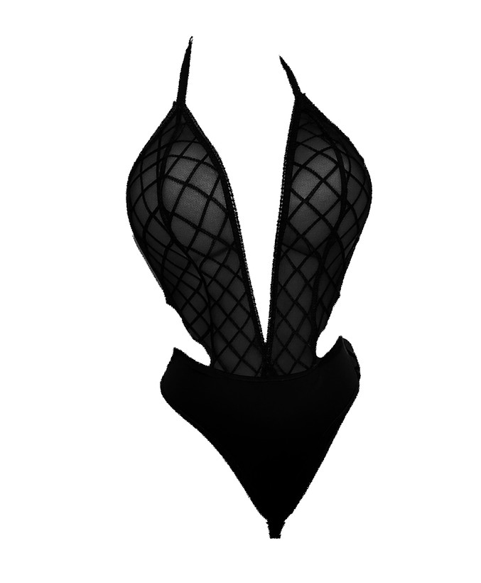 | جزئیات ویژه | پارچه مشبک لوزی با نمای نیمهشفاف برای ایجاد جلوه بصری جذاب، ترکیب با پایینتنه یکدست مشکی برای تعادل حجم. |