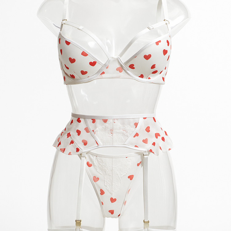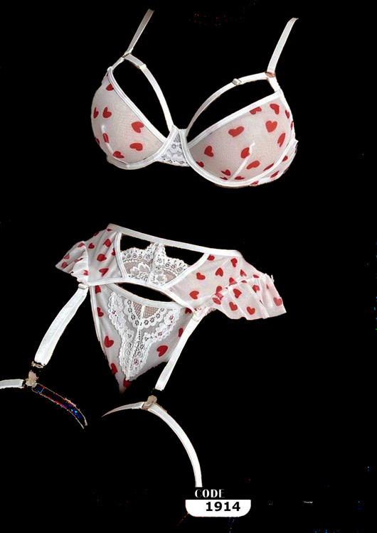 نوع: ست لباس زیر سهتکه (سوتین، شورت، گارتر کمری) به همراه بند اتصال به جوراب