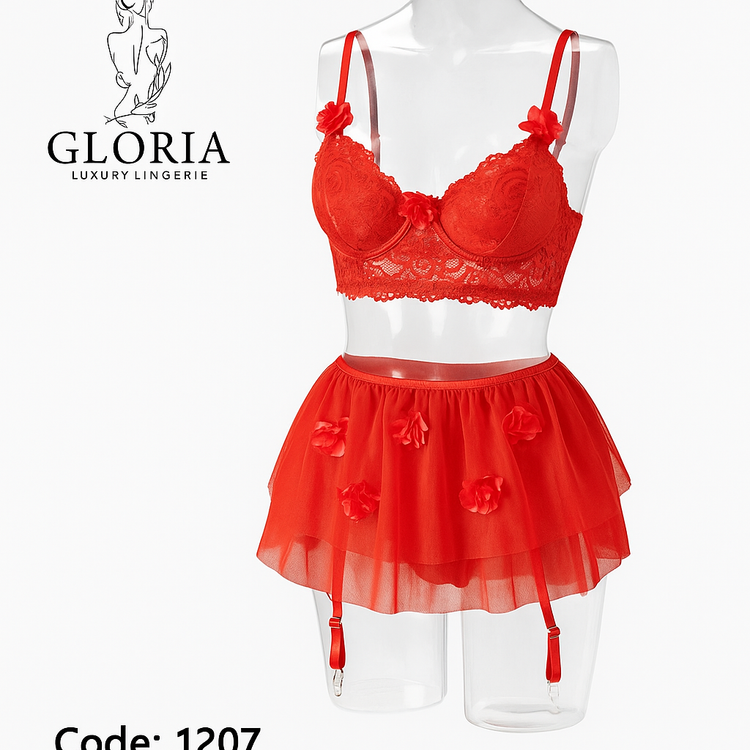 ست قزمز کد 1207 از گلوریا، انتخابی است که بیشتر برای بانوانی مناسب است که به دنبال تجربه حس لطافت همراه با ظرافت طراحی هستند. نکته مثبت مهم این محصول استفاده از تور سبک و دانتل نرم است که اجازه حرکت و تنفس پوستی را فراهم میکند. گلهای سهبعدی روی هر دو بخش سوتین و دامن، هویت خاص و منحصر به فردی به ست میبخشند.
