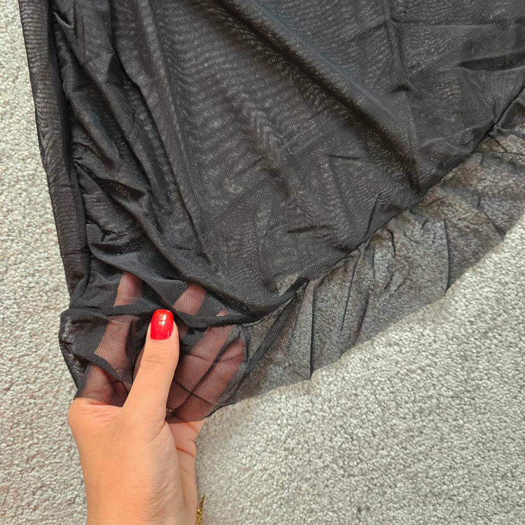 دامن کوتاه با چین نرم در پایین و تور اضافه در سمت عقب برای حجمبخشی