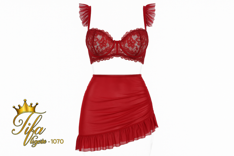 مدل Tifa 2070 قرمز ترکیبی است از طراحی جسورانه و جزئیات لوکس. رنگ قرمز یاقوتی و گیپور گلدار باعث میشود این مدل هم در نگاه اول توجه را جلب کند و هم از نزدیک کیفیت و ظرافت دوختش را نشان دهد.