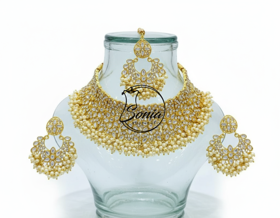 نوع محصول : ست کامل گردنبند چوکر پهن و گوشواره مجلسی