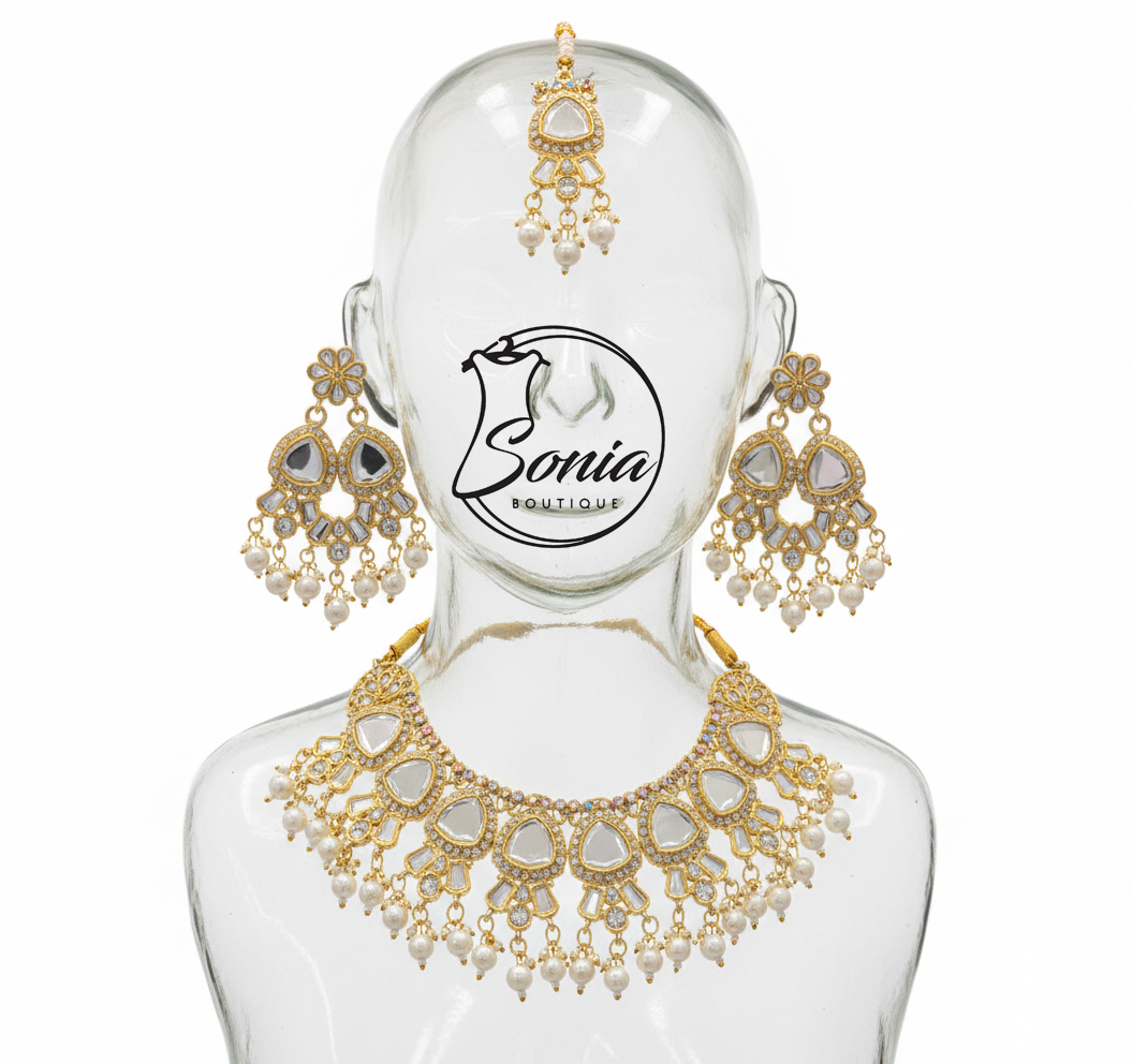 - ترکیب رنگ طلایی با مروارید سفید، کلاسیک و همهپسند