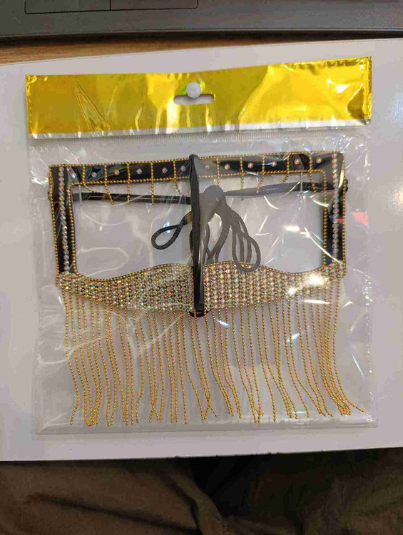 رنگ: پیش زمینه مشکی-طلایی با نگینهای سفید/مرواریدی