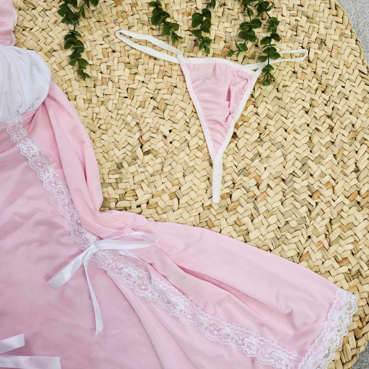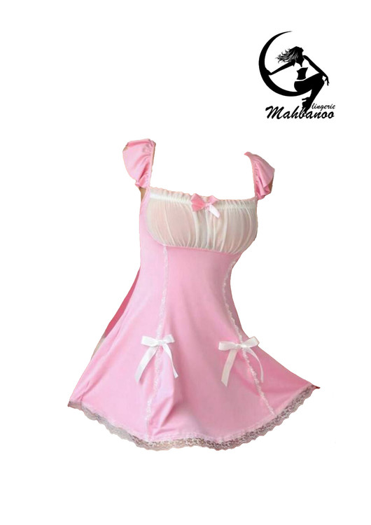 رنگ: صورتی روشن با بخش بالاتنه سفید و روبان صورتی