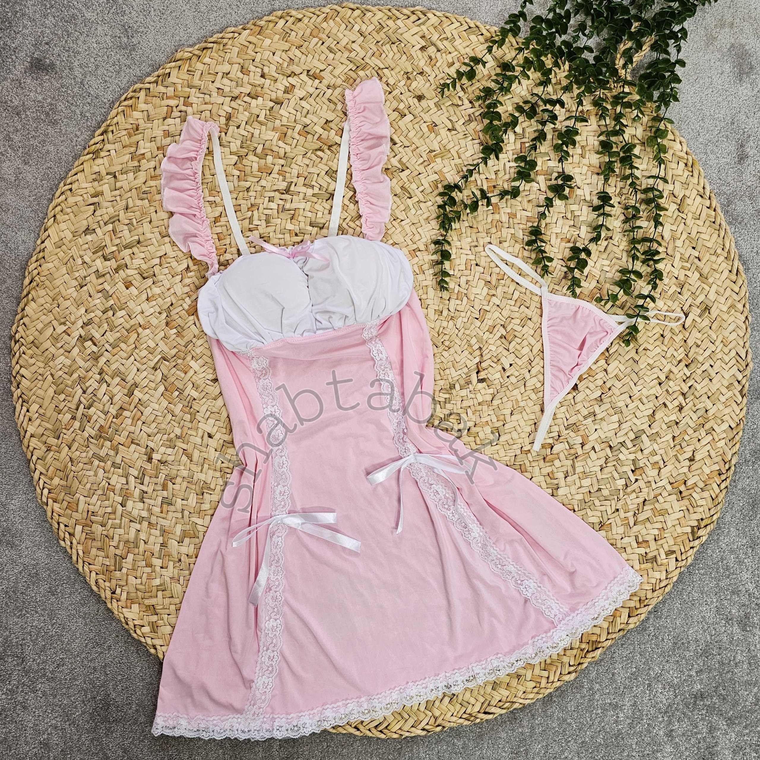رنگ: صورتی روشن با بخش بالاتنه سفید و روبان صورتی