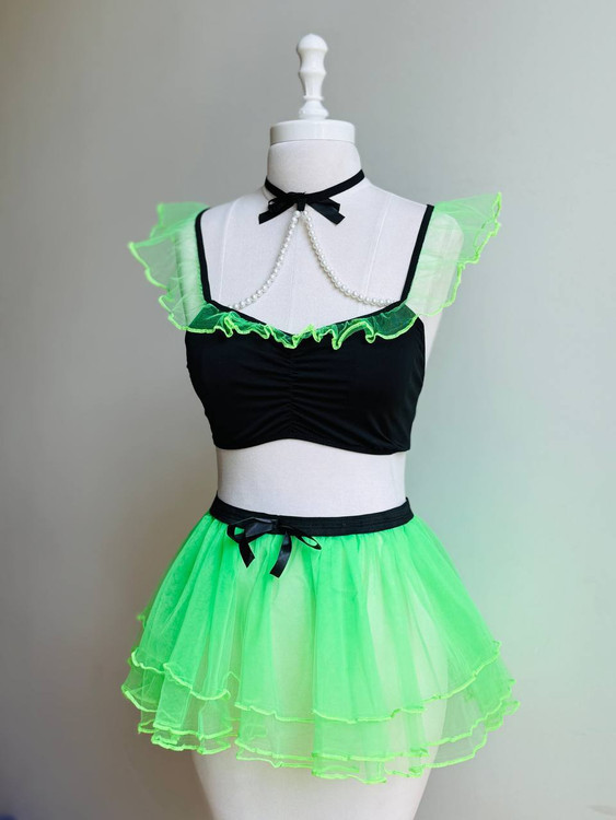 سبز لیمویی (با تاپ مشکی و تزیین مروارید)