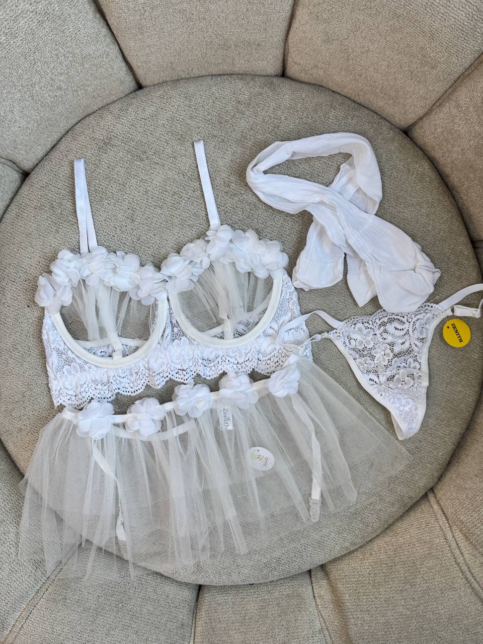 شورت : دانتل گل‌دار فانتزی بندهای کناری ساتنی و طرح بندی V کاملاً هماهنگ با سوتین و گارتر