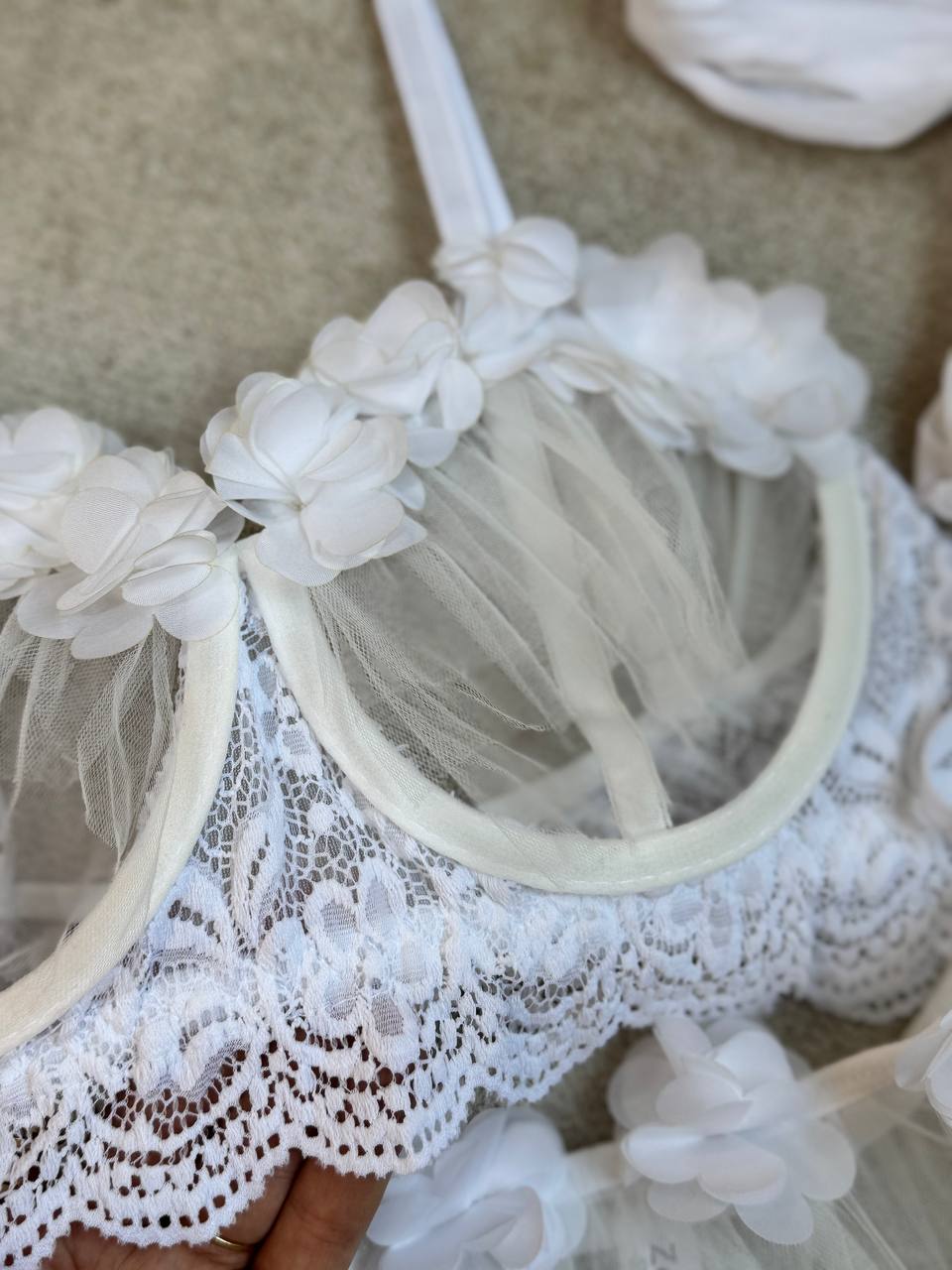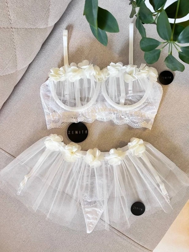 طراحی سوتین : لبه‌دار با تور و گل‌های پارچه‌ای سه‌بعدی