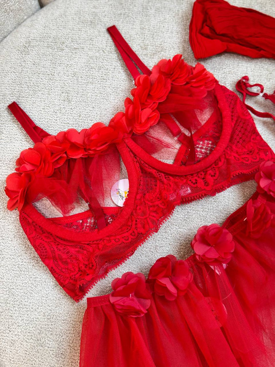 طراحی سوتین: لبهدار با تور و گلهای پارچهای سهبعدی